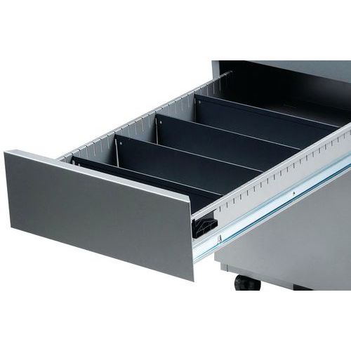 - Il sistema laterale per cartelle sospese ottimizza l'archiviazione negli armadi Dera 1100. È facilmente installabile e offre una perfetta stabilità in tutte le sezioni del mobile. Il sistema laterale consente un accesso rapido e organizzato ai documenti sospesi. Il design in acciaio di alta qualità garantisce robustezza e resistenza all'uso quotidiano. Ideale per gli ambienti professionali aziendali che richiedono una classificazione efficiente.