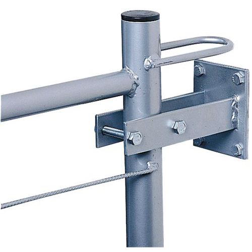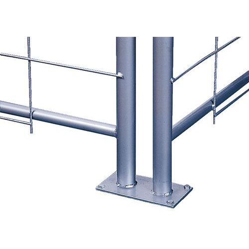 Da ordinare per il montaggio: Per uso interno: - staffe per fissaggio al suolo incastrabili nei montanti dei tubi, - staffe per fissaggio a muro per iniziare la barriera contro un muro. Per utilizzo all'esterno: - base in calcestruzzo con maniglia per il trasporto. Accessori d'allestimento: - elemento porta, - sistema di chiusura a lucchetto (non fornito) per la porta.