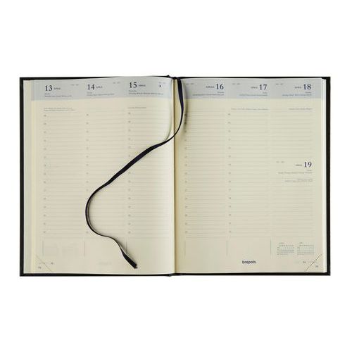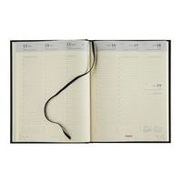 - Agenda settimanale con copertina in similpelle a rilegatura laterale.
