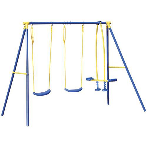 Altalena con struttura in acciaio verniciato ad esclusivo uso privato. Disponibile in differenti versioni. Prodotto da assemblare. Prodotto testato da TUV RHEINLAND e conforme alla normativa europea UNI EN 71 parti 1-2-3-8.