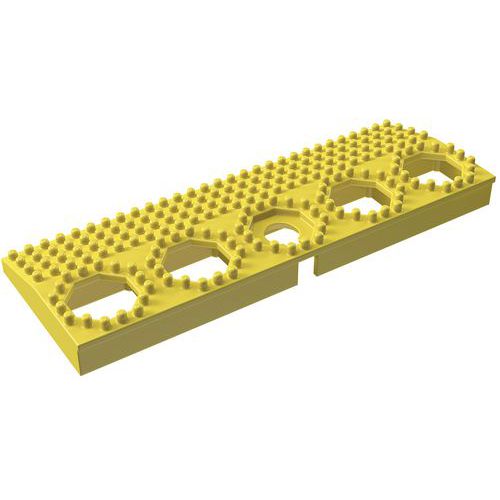 - Rampa di sicurezza in nitrile compatibile con modulo antifatica e-Flex™ Notrax. Disponibile in nero e giallo, il collegamento di questo bordo è possibile su ogni lato del modulo. Cornice dei moduli per una finitura perfetta. Facile da installare mediante sistema di ganci di collegamento. L'angolo a 10° consente il facile passaggio delle sedie a rotelle sulla rampa riducendo al minimo il rischio di ribaltamento.