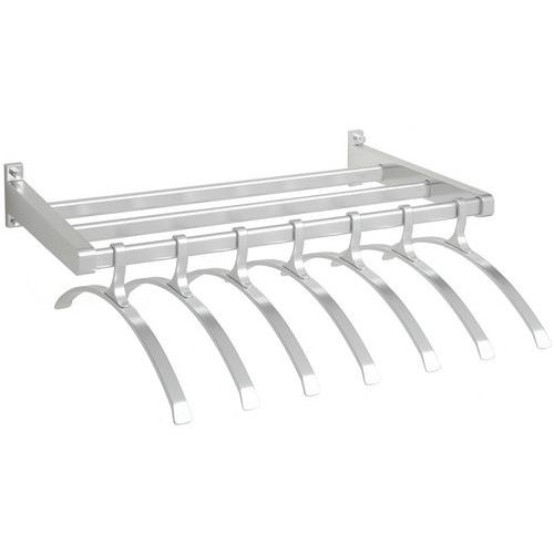 Appendiabiti da parete in alluminio anodizzato di ottima finitura con porta grucce. Materiali della struttura e delle aste resistenti, durevoli nel tempo. Costituito da 3 aste di aggancio parallele per grucce.