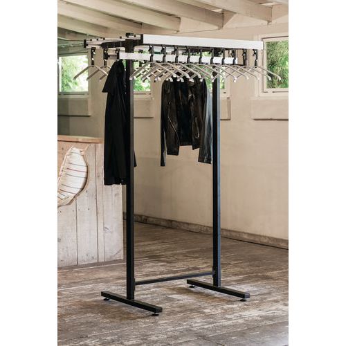 | Descrizione | Appendiabiti , Altezza: 175 cm, Larghezza: 120 cm, Colore: Nero, Tipo prodotto: Doppio, Profondità: 110 cm |