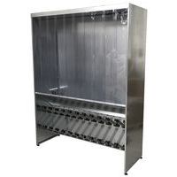 Appendiabiti in acciaio di struttura robusta e ad aria calda pulsata. Ampio scomparto alto con asta in acciaio da 7 a 12 persone. Chiusura perfetta garantita dalla porta a strisce in PVC isolante. Struttura bassa dotata di 24 aste in alluminio fisse per calzature. Asciugatura ottimizzata: 2 sistemi di ventilazione a portata elevata (700 m3/h, 1600 W). Ideale per il settore edile!