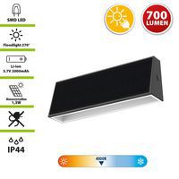 | Descrizione | Applique da parete a led a energia solare con doppio fascio luminoso Liner-Velamp, Flusso luminoso: 700 lm |