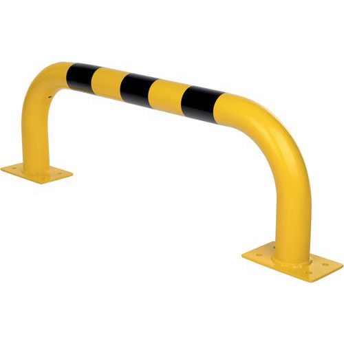 Robusto archetto di protezione in acciaio utilizzato per proteggere attrezzature o macchinari da possibili colpi da parte delle attrezzature di movimentazione. Buona visibilità grazie al suo colore giallo/nero bicolore. Adatto sia per uso interno che esterno. Materiale di fissaggio non incluso. Certificato TÜV.