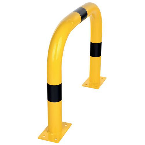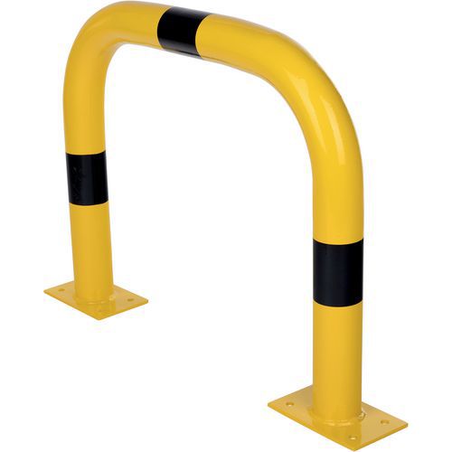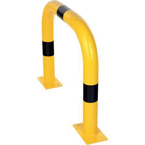 Robusto archetto di protezione in acciaio utilizzato per proteggere attrezzature o macchinari da possibili colpi da parte delle attrezzature di movimentazione. Buona visibilità grazie al suo colore giallo/nero bicolore. Adatto sia per uso interno che esterno. Materiale di fissaggio non incluso. Certificato TÜV.