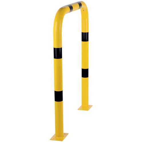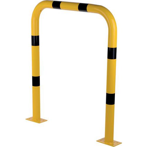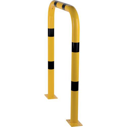 Robusto archetto di protezione in acciaio utilizzato per proteggere attrezzature o macchinari da possibili colpi da parte delle attrezzature di movimentazione. Buona visibilità grazie al suo colore giallo/nero bicolore. Adatto sia per uso interno che esterno. Materiale di fissaggio non incluso. Certificato TÜV.