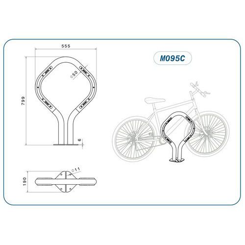 | Descrizione | Archetto portabiciclette, Lunghezza totale: 560 mm, N. di posti: 2, Larghezza totale: 190 mm |