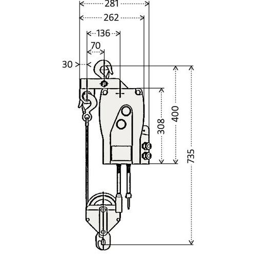 La trasmissione del cavo tramite puleggia strozzatrice e auto-serraggio proporzionale al carico (stesso sistema dei modelli Tirfor) offre altezze di sollevamento illimitate.