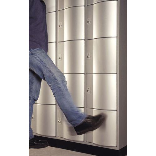 Armadietto da ufficio monoblocco, robusto, antivandalismo. Ante bombate, indistruttibili antieffrazione. Rivestimento a polvere, resistente ai graffi. Ottima finitura con cerniere invisibili. Igienico, con ventilazione sul lato posteriore. Limitatore di apertura dell'anta a 80°.