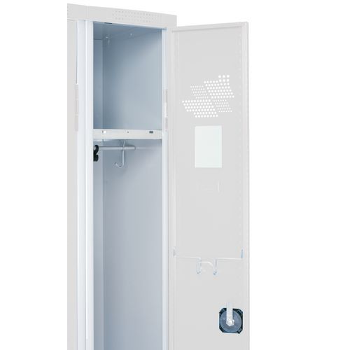 Armadietto in lamiera d'acciaio di prima scelta, molto robusto e indeformabile. Lamiera d'acciaio 6/10 profilata (equivale a piegatura standard 8/10). Eccellente resistenza meccanica con profilo chiuso aggraffato. Anta impossibile da scardinare aperta o chiusa, antieffrazione. Articolazione su cerniere con apertura a 180°. Armadietto con porta-etichette integrato. Unite resistenza, sicurezza ed estetica per i vostri spazi condivisi!