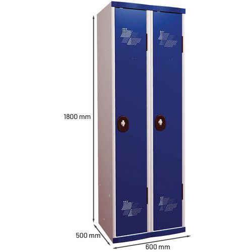 Armadietto in lamiera d'acciaio di prima scelta, molto robusto e indeformabile. Lamiera d'acciaio 6/10 profilata (equivale a piegatura standard 8/10). Colonne saldate tra di loro per maggiore robustezza. Eccellente resistenza meccanica con profilo chiuso aggraffato. Anta impossibile da scardinare aperta o chiusa, antieffrazione. Articolazione su cerniere con apertura a 180°. Armadietto con porta-etichette integrato. Unite resistenza, sicurezza ed estetica per i vostri spazi condivisi!