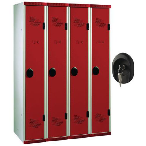 Attenzione: i modelli con chiusura con maniglia lucchettabile sono forniti senza lucchetto, da ordinare separatamente (Ø ansa da 6 a 7 mm mini-maxi). Consigli per la sicurezza: installare il mobile su una superficie piana, fissarlo al muro o su una parete divisoria mediante un dispositivo di fissaggio appropriato.