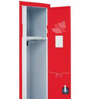 Armadietto in lamiera d'acciaio di prima scelta, molto robusto e indeformabile. Lamiera d'acciaio 6/10 profilata (equivale a piegatura standard 8/10). Colonne saldate tra di loro per maggiore robustezza. Eccellente resistenza meccanica con profilo chiuso aggraffato. Anta impossibile da scardinare aperta o chiusa, antieffrazione. Articolazione su cerniere con apertura a 180°. Armadietto con porta-etichette integrato. Unite resistenza, sicurezza ed estetica per i vostri spazi condivisi!