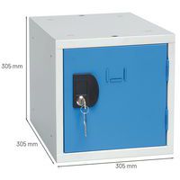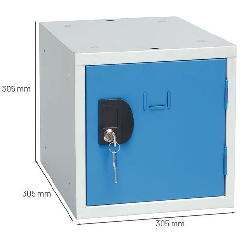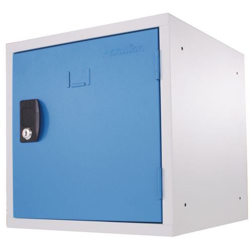 Armadietto a cubo a scomparti preforato da assemblare. Chiusura a chiave tramite serratura a cilindro. Scomparto con alloggio per porta-etichette. Confortevole con apertura dell’anta a 180°.