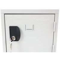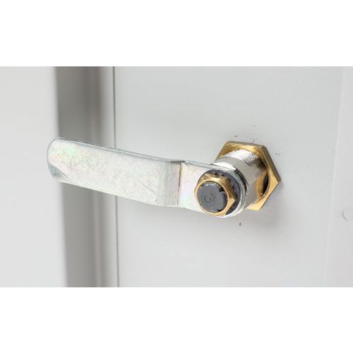 Armadietto a cubo a scomparti preforato da assemblare. Chiusura a chiave tramite serratura a cilindro. Scomparto con alloggio per porta-etichette. Confortevole con apertura dell’anta a 180°. Lamiera sp. : 7/10 Garanzia Cliente : 10 anni