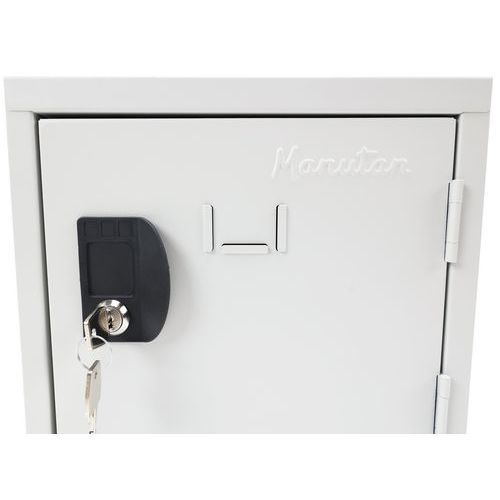 Armadietto a cubo a scomparti preforato da assemblare. Chiusura a chiave tramite serratura a cilindro. Scomparto con alloggio per porta-etichette. Confortevole con apertura dell’anta a 180°.