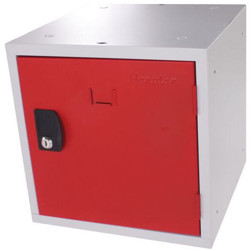 Armadietto a cubo a scomparti preforato da assemblare. Chiusura a chiave tramite serratura a cilindro. Scomparto con alloggio per porta-etichette. Confortevole con apertura dell’anta a 180°.