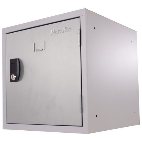 Armadietto a cubo a scomparti preforato da assemblare. Chiusura a chiave tramite serratura a cilindro. Scomparto con alloggio per porta-etichette. Confortevole con apertura dell’anta a 180°.