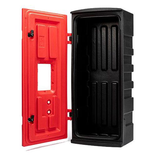 | Descrizione | Armadietto antincendio a caricamento frontale, Materiale: Polietilene, Colore: Rosso/nero, Per estintore |