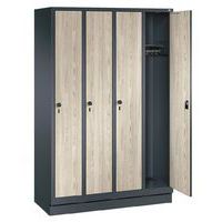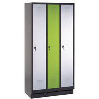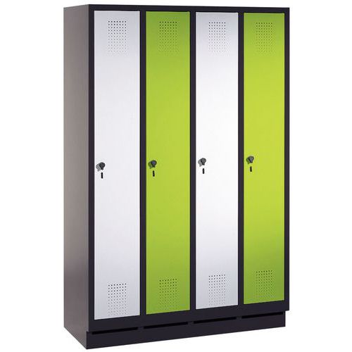 - Armadietto per indumenti puliti Evolo PLUS, corpo in acciaio con angolo interno inclinato per scomparto per facilitare la tenuta del contenuto dell'armadio. Corpo con fori di aerazione in alto e in basso per una circolazione ottimale dell'aria. Maggiore protezione contro la corrosione grazie al fondo dello scomparto galvanizzato e dei piedini di fondo in alluminio. Ante decorative in MDF dotate di blocco di sicurezza girevole ergonomico per lucchetti. Limitatore di apertura dell'anta per evitare l'estensione eccessiva e la sovrapposizione con la superficie utile dell'armadietto vicino.