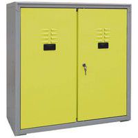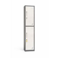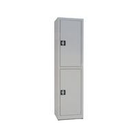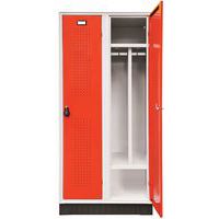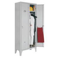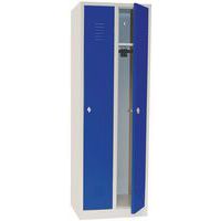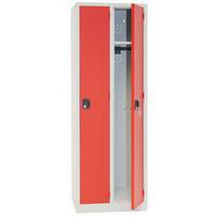 - Armadietto robusto in acciaio con finitura trattata in vernice epossidica. Aerazione sulla parte bassa dell'anta e portaetichette in alto. Pratico con ampio spazio interno per appendiabiti e scomparto alto. Massima sicurezza con serratura a chiave integrata su ciascuna anta.