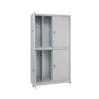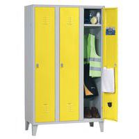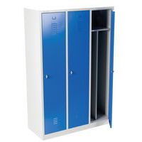 - Armadio spogliatoio tre posti a tre ante, tetto piano, realizzato interamente in lamiera zincoplastificata.