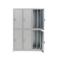 - Armadio spogliatoio costruito in lamiera d’acciaio inox 304 zincoplastificata a 6 ante sovrapposte a battente, adatto al contatto con gli alimenti come da certificazione MOCA.