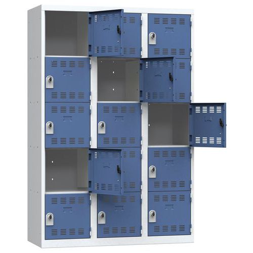 Armadietto multiscomparto da 1 a 3 colonne con scomparti sovrapposti per colonna. Monoblocco, saldato in fabbrica per una maggiore robustezza e rigidità. Economico e funzionale, grazie agli ampi scomparti. Per riporre ordinatamente diversi tipi di attrezzature o oggetti. Ideale per scuole, centri sportivi, ospedali, imprese, settore terziario o industriale, ecc.
