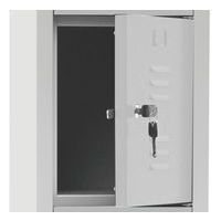 Armadietto su base con finecorsa antirumore. Con fori per fissaggio alla parete. Aerazione in alto e in basso sul lato anteriore. Ante rinforzate con cerniere invisibili. Elegante finitura con portaetichette integrati. Garanzia Cliente : 10 anni Lamiera sp. : 7/10