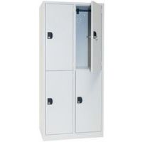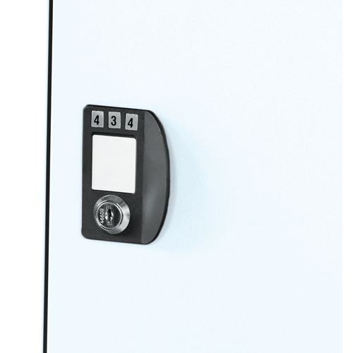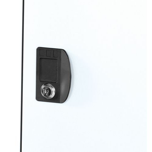 Armadio multiscomparto appendiabiti in finitura elegante epossidica. Angoli arrotondati per la massima sicurezza. Armadietto con rivestimento ultra resistente ai graffi. Chiusura silenziosa con finecorsa in plastica. Feritoia di aerazione sul fondo di ciascun scomparto. Maniglia di chiusura con porta-etichette.
