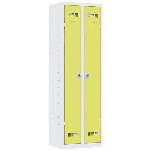 Armadietto multiuso a 2 ante. Composto da una parte appendiabiti e una parte di sistemazione. Gamma moderna che combina qualità, sicurezza e design. Saldato in fabbrica per garantire la massima robustezza. Livello di resistenza all'effrazione molto elevato. Consigli di sicurezza: - Installare il mobile su una superficie piana - Fissarlo a un muro o a una parete divisoria con dispositivi di fissaggio appropriati - Prestare attenzione a non superare il carico massimo consigliato e a ripartirlo adeguatamente