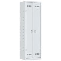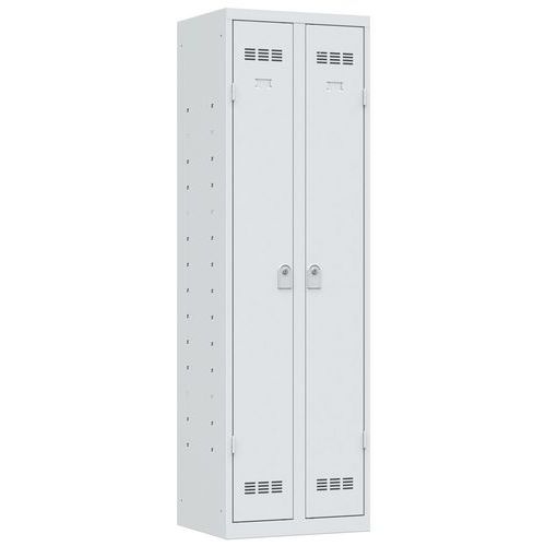 Armadietto multiuso a 2 ante. Composto da una parte appendiabiti e una parte di sistemazione. Gamma moderna che combina qualità, sicurezza e design. Saldato in fabbrica per garantire la massima robustezza. Livello di resistenza all'effrazione molto elevato. Consigli di sicurezza: - Installare il mobile su una superficie piana - Fissarlo a un muro o a una parete divisoria con dispositivi di fissaggio appropriati - Prestare attenzione a non superare il carico massimo consigliato e a ripartirlo adeguatamente