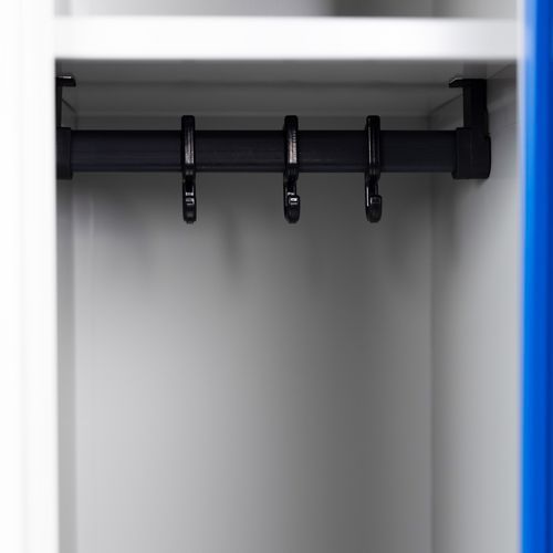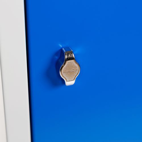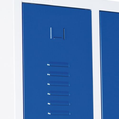 Armadietto in acciaio robusto ad ante rinforzate. Apertura ottimale a 180° e cerniere a scomparsa. Igienico con ventilazione alta e bassa delle ante. Fori per aggancio alla parete, portaetichette integrato.