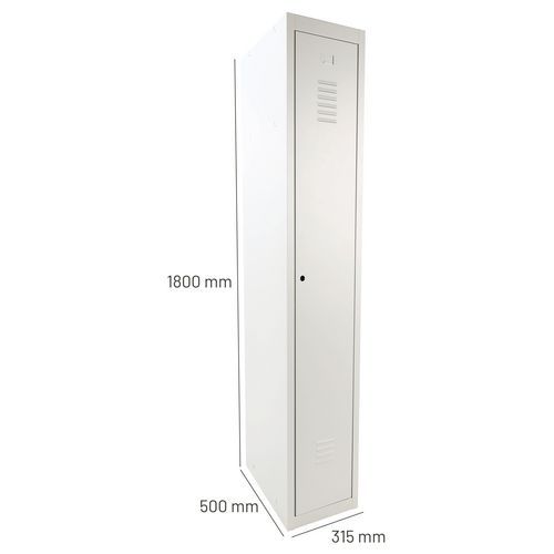 Organizzazione interna: 1 scomparto portaoggetti nella parte superiore formato da un ripiano intermedio, 1 appendiabiti nella parte inferiore con 1 asta e 2 ganci. Armadietto fornito con serratura a leva a testa tonda e 2 chiavi.