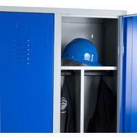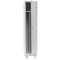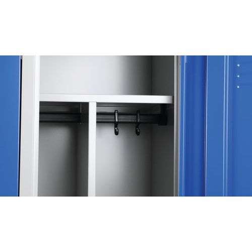 Armadietto con piedi per indumenti sporchi con ante rinforzate. Apertura ottimale a 180° con cerniere a scomparsa. Appendiabiti con separazione indumenti puliti/sporchi. Fori per aggancio alla parete, portaetichette integrato. Armadietto igienico con aerazione delle ante in alto e in basso.