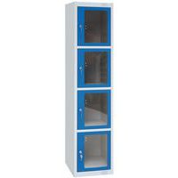 - Robusto armadietto in acciaio a 4 scomparti con porta in plexiglas.