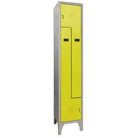 - Armadio spogliatoio monoblocco elettro-puntato non assemblato su piedi con doppia porta a “L” su ogni colonna singola.