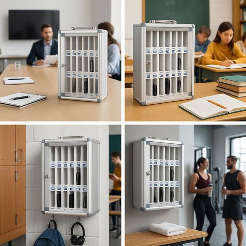 | Descrizione | Armadietto per telefoni cellulari MOBISAFE, N. di scomparti: 24, Larghezza: 26.5 cm, Profondità: 19 cm |