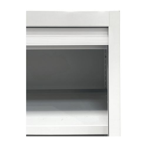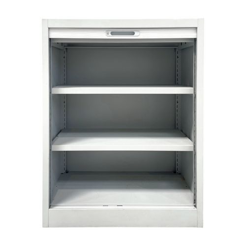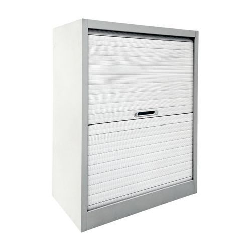 Armadietto ricondizionato basso largo con ante a serranda - Bianco e grigio