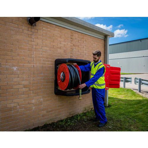 | Descrizione | Armadio a muro per idrante antincendio, Materiale: Polietilene, Colore: Rosso/nero, Altezza totale: 1000 mm |