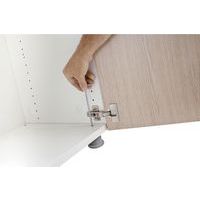 - Cerniera con ammortizzatore di chiusura e regolabile in profondità, in altezza e lateralmente.