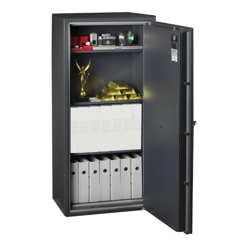 Armadio ignifugo 1h. Apertura delle ante fino a 200°. Blindaggio antiperforazione al manganese. Consegna su appuntamento con installazione presso il cliente e ritiro degli imballaggi per il riciclo. Consegna a piano terra, con 2 gradini massimo o al piano con ascensore. 20 metri lineari massimo. Per tutte le richieste di consegne particolari, contattare il nostro Servizio clienti (accessi difficili, forte pendenza, terreno cedevole). Protezione antifurto : Classe 2
