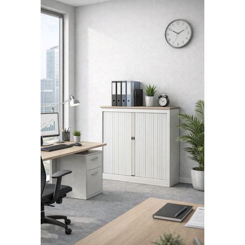 Armadietto basso ricondizionato - Apertura a serranda - Bianco