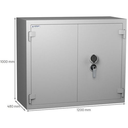 | Descrizione | Armadio blindato ignifugo, Altezza totale: 1000 mm, Larghezza totale: 1200 mm, Tipo di chiusura: Con codice |
