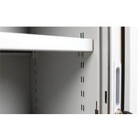 Scoprite la facilità di utilizzo di questo armadio compatto. Regolate il ripiano e utilizzatelo anche per le cartelle sospese. Finitura con vernice epossidica antigraffio. Chiudete a chiave le ante a serranda in plastica con una serratura a cilindro. Consigli di sicurezza: - Installare il mobile su una superficie piana - Fissarlo a un muro o a una parete divisoria con dispositivi di fissaggio appropriati - Prestare attenzione a non superare il carico massimo consigliato e a ripartirlo adeguatamente
