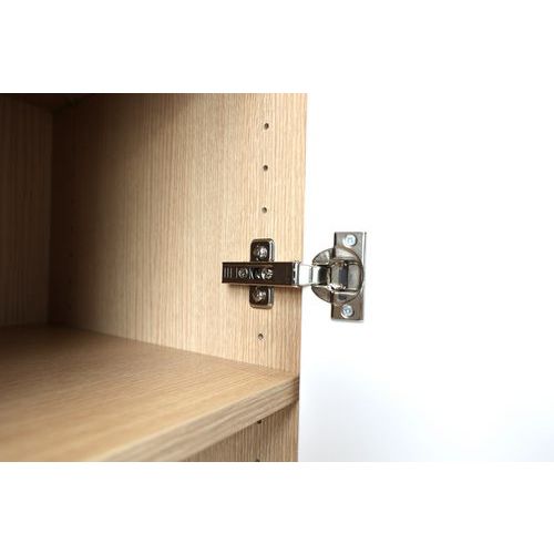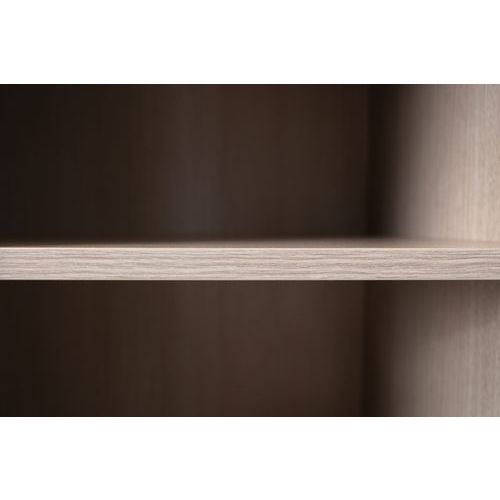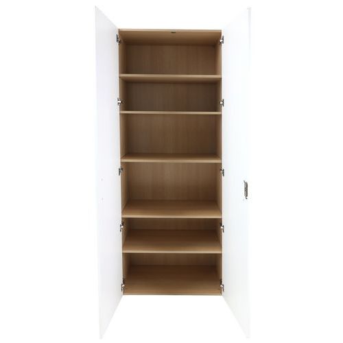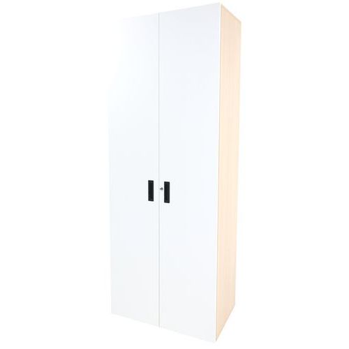 Armadio con ante battenti in melamminico di 18 mm con profili in ABS di 1 mm. Ripiano in melamminico ABS di 2 mm con portata massima di 32 kg. Armadio con serratura venduto con 2 chiavi.