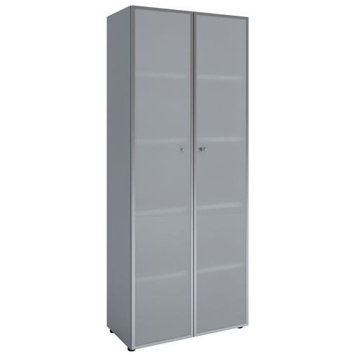 - Scegliete questo armadio dal design essenziale con struttura color alluminio e ante in vetro satinato.