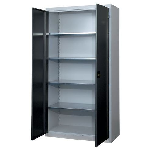 Armadio con ante battenti e serratura di sicurezza con maniglia girevole. In lamiera d'acciaio di alta qualità. Armadio con ante battenti e serratura di sicurezza con maniglia girevole. Realizzato in lamiera di acciaio di alta qualità. 4 ripiani galvanizzati. Capacità di carico per ripiano di 60 kg. Prodotto fornito montato.